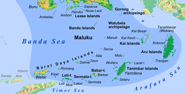 Located in the Banda Sea, these islands are accessible via Ambon or Banda Neira airports. The main islands include Banda Neira, Banda Besar, and Banda Api, each offering unique natural and cultural attractions amid tropical settings.